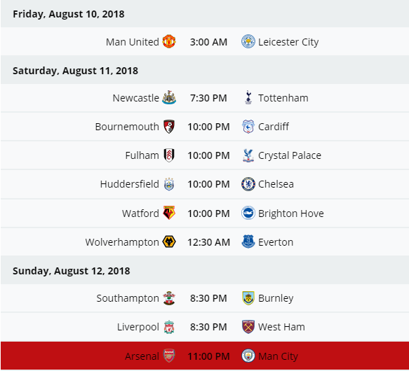 Manakala Arsenal pula bakal berdepan Manchester City pada perlawanan terakhir minggu pertama liga dimulakan.