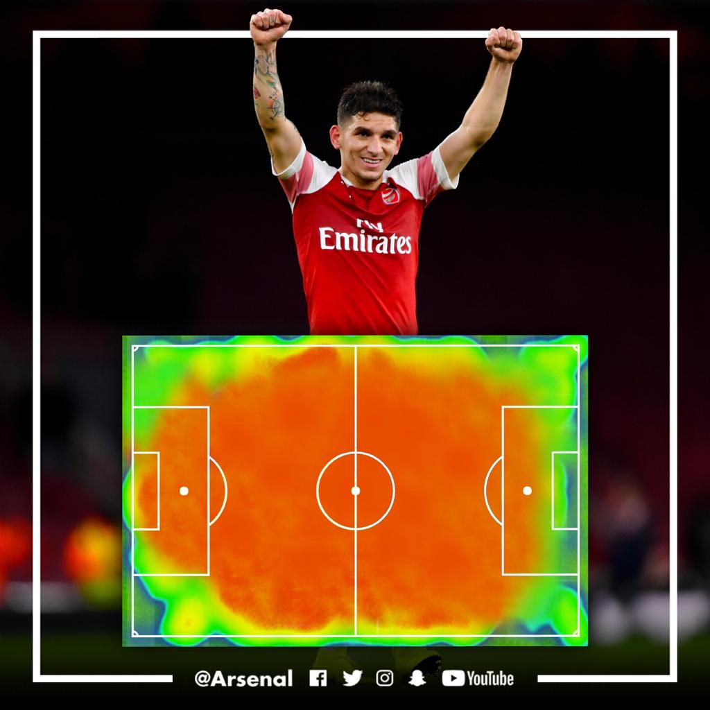 Lucas Torreira's heatmap against Napoli 🔥— Arsenal FC (@Arsenal) April 11, 2019